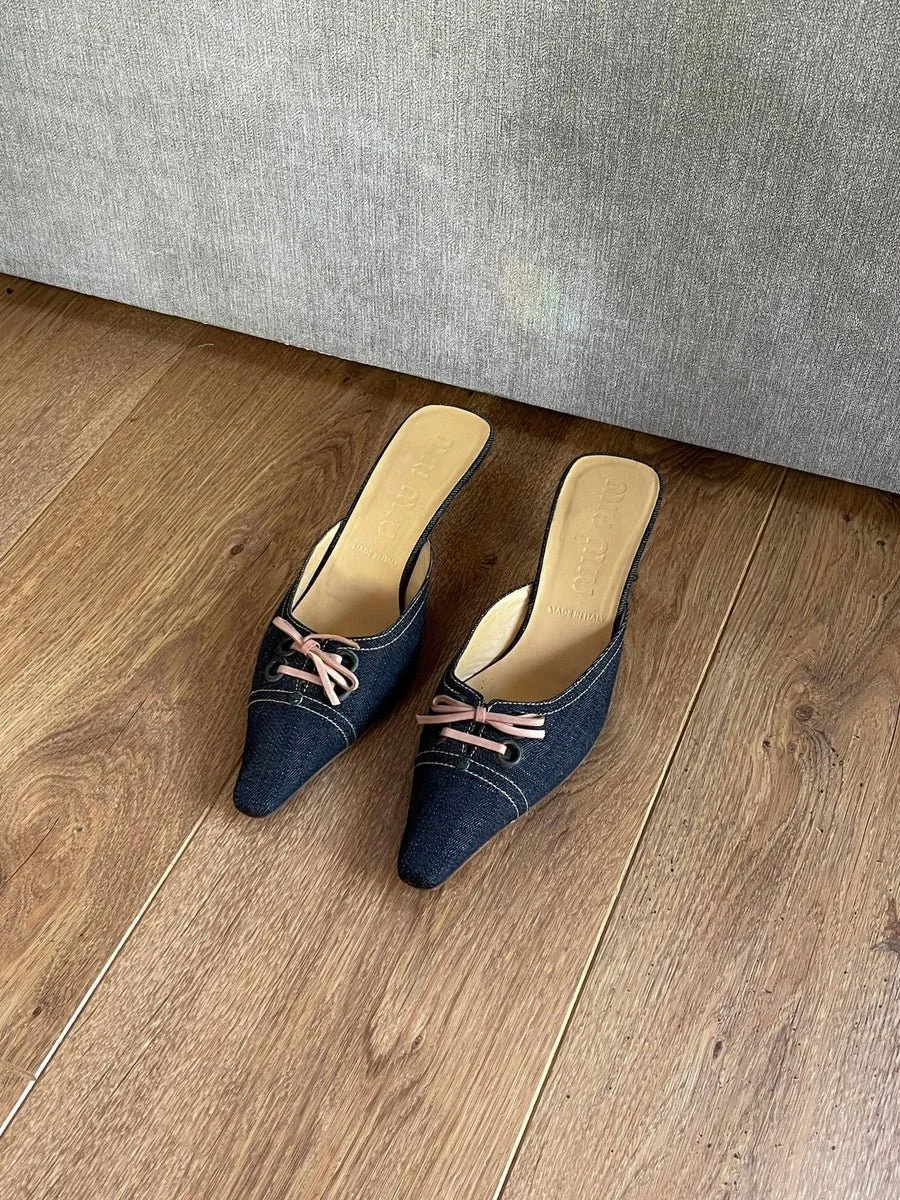I haven’t the actual name of this pair as I found them on a second-hand website, and have yet to be able to find them elsewhere. The denim look paired with the pink accents of the bows on the front is a beautiful colour combination and pleasing on the eye.